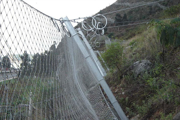 防落石網也稱為被動邊坡防護網,主要構成工字鋼立柱,拉繩錨桿,支撐繩,鋼絲繩網,減壓環。說到防落石網的做法,我們先了解下為什么要安裝防落石網,他用在什么地方。